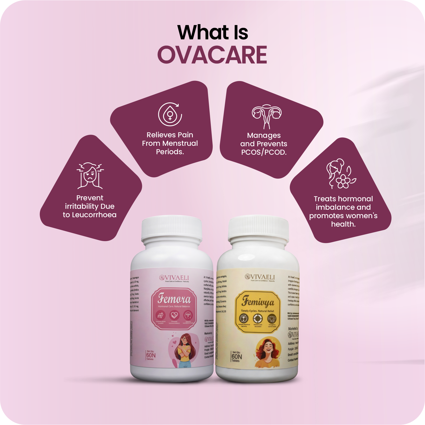 OvaCare is a women’s health supplement designed to support hormonal balance, menstrual health, and reproductive wellness. It is especially helpful for women dealing with PCOS/PCOD or irregular cycles.